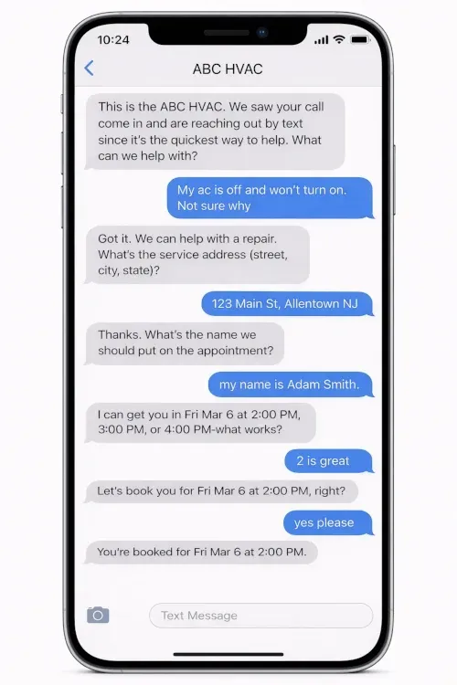 Book Every Job sends a text to the homeowner before they call the next company. It collects what you need and books the job on your calendar.